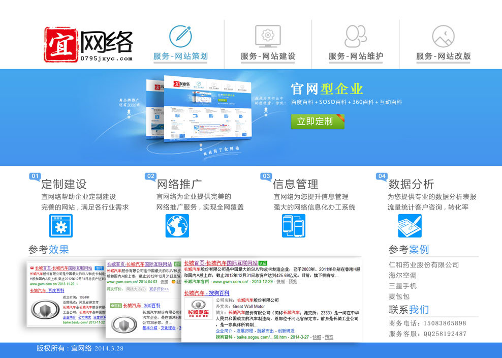 3)、明確自己的競(jìng)爭(zhēng)優(yōu)勢(shì) 你的網(wǎng)上、網(wǎng)下競(jìng)爭(zhēng)對(duì)手是誰(shuí)?(網(wǎng)上競(jìng)爭(zhēng)對(duì)手可以通過(guò)搜索引擎查找),與他們相比,您在商品、價(jià)格、服務(wù)、品牌、配送渠道等方面有什么優(yōu)勢(shì)?競(jìng)爭(zhēng)對(duì)手的優(yōu)勢(shì)你能否學(xué)習(xí)?如何根據(jù)自己的競(jìng)爭(zhēng)優(yōu)勢(shì)來(lái)確定你的營(yíng)銷戰(zhàn)略?例如:搜索“宜春網(wǎng)站建設(shè)”“宜春網(wǎng)站制作”“宜春網(wǎng)絡(luò)公司”等宜春相關(guān)關(guān)鍵詞,都可以看到我們宜網(wǎng)網(wǎng)絡(luò)傳媒有限公司的網(wǎng)站,域名是:http://m.zhongfanghz.com,如果您方便的話,現(xiàn)在可以搜索“宜春網(wǎng)站建設(shè)”體驗(yàn)一下關(guān)鍵詞所帶來(lái)的魅力。